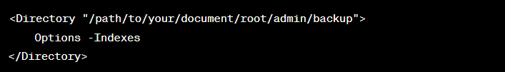 이 설정은 Apache에게 /admin/backup 디렉토리에 인덱스 파일이 없을 때 "Index of /" 페이지를 표시하지 말라고 지시합니다. /path/to/your/document/root는 실제 디렉토리 경로로 교체해야 합니다.