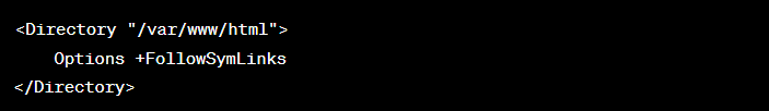 이 설정은 /var/www/html 디렉토리에 있는 모든 심볼릭 링크가 웹 서버에 의해 따라갈 수 있음을 의미합니다. 이를 통해 서버는 심볼릭 링크가 가리키는 실제 파일이나 디렉토리를 찾아 제공하게 됩니다.