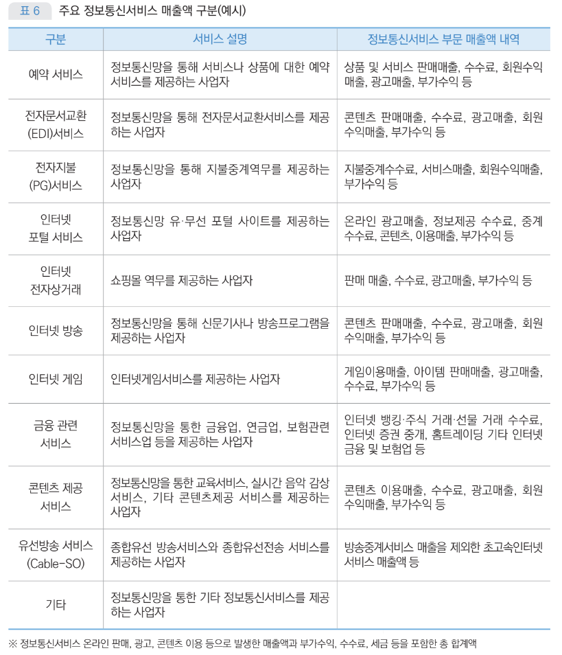 정보통신서비스 분야 매출액은 다음 예시로 확인