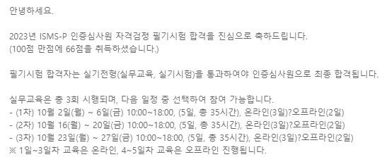 | ISMS-P 실기 최종합격 (0) | 2023.11.27 |