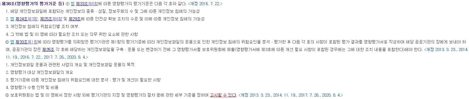 - 개인정보보호법 시행령 제38조(영향평가의 기준 등)