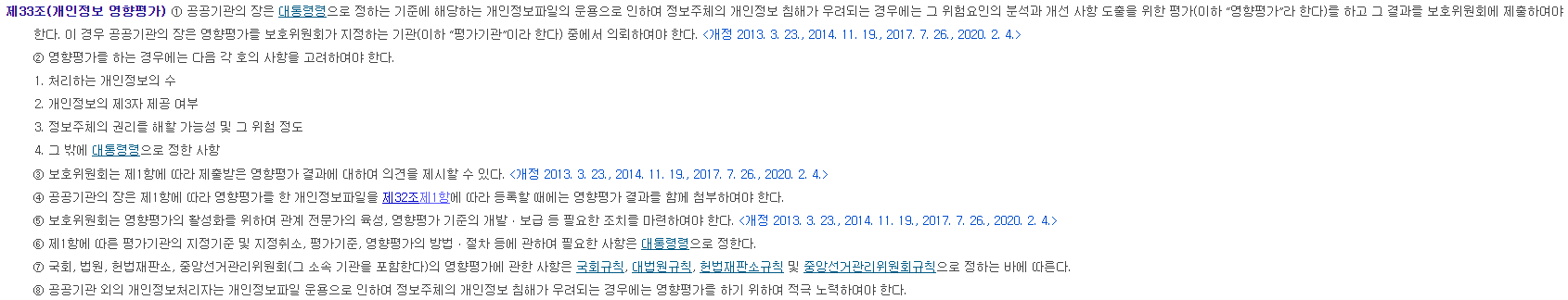 개인정보보호법 제33조는 동법 시행령 제38조를 통해 개인정보보호위원회의 고시로 개인정보영향평가